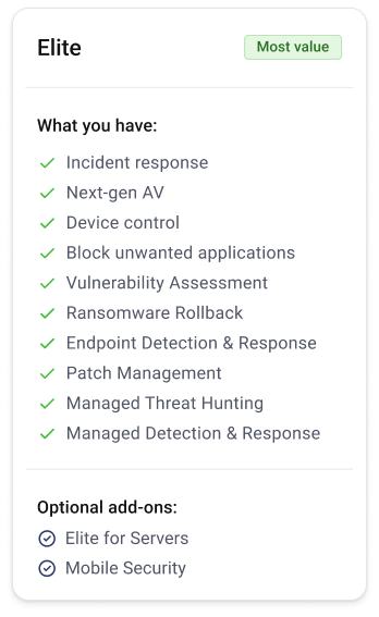 ThreatDown solutions are built for everyone- not just companies with deep pockets and large security teams. Our solutions combine technology with services to provide robust protection that’s efficient and cost-effective.